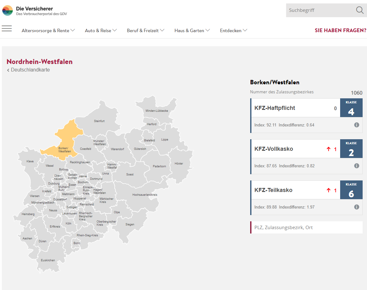 Neue Regionalklassen: Wie ist Ihre Region eingestuft? Die Regionalklasse spiegelt die Schaden- und Unfallbilanz einer Region wider. Sie ist eines von zahlreichen Tarifmerkmalen, das die Versicherer zur Berechnung des Versicherungsbeitrages berücksichtigen. Unten verlinkt können Sie die Einstufung Ihrer Region mit wenigen Klicks herausfinden. Haben Sie Fragen zur Ihrer KFZ-Versicherung, dann melden Sie sich gerne. Wir wünschen Ihnen weiterhin eine gute Fahrt! Ihr SIGNAL IDUNA Team Epe